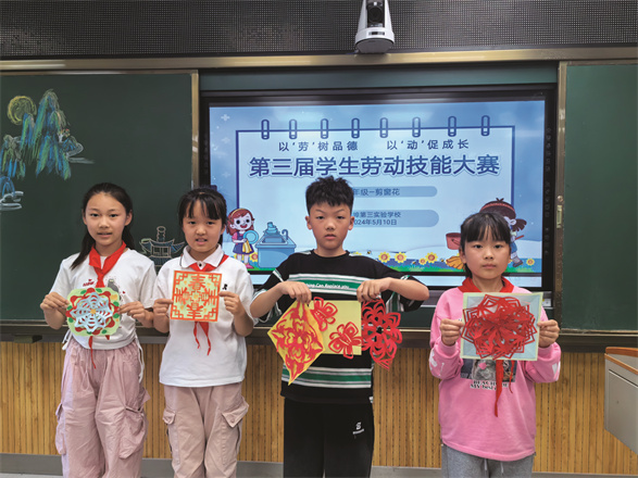 五月份的第二周是安徽省“学生劳动教育宣传周”,学校抓住这一契机开展校园劳动技能大赛。一年级进行“整理书包竞速赛”,二年级举行“系鞋带和戴红领巾”比赛,三年级举行“剥豌豆”大赛,四年级举行“剪窗花”大赛,五年级举行“钉纽扣”比赛,六年级则进行了“创意水果拼盘”的比拼。在一次次比赛中,孩子们劳动热情空前高涨,更解锁了不少劳动新技能,可谓收获满满!