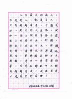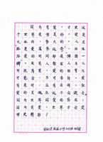 露一手 把励志写在纸上 学校:宿松县松兹小学 班级:六(4)班 姓名:田方园 我喜欢练字。听到这句话,你一定会想:练字多枯燥啊,你还喜欢? 的确,这句话听上去就像“我最喜欢听的音乐是上课铃声”一样,让人觉得十分不可信。其实,汉字最有趣的地方,不是它的笔画,而是它们能组合在一起,形成优美的语句。 没事的时候,我都会坐下来,练练毛笔字,写写钢笔字。我喜欢抄写一些励志方面的文章,在抄写的时候,也默默记住了那些十分有力量的句子。在平时的学习和生活中,它们总会适时地蹦到我的脑海里,提醒着我。 当我遇到挫折,丧失斗志的时候,我告诉自己“信念是储备品,行路人在破晓的时候带着它登程,但愿他在日暮以前足够使用”。 当我怀疑自己能力不足的时候,我告诉自己“理想,神圣的美,你在苦命的人心中萌芽;理想,使人的思想坚定,使人心伟大”。 当我疲惫松懈的时候,我告诉自己“一个没有受到献身的热情所鼓舞的人,永远不会做出什么伟大的事情”。 这些精炼且富有哲理的语言,是人们在挫折中提炼出来的教训,是人们在成功之后总结出来的经验。一遍遍地抄写,不仅使我的字迹越来越工整,还让我学会了怎样从容地面对困难。