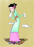 哈哈漫迷 2.既然黛玉生活在清代,她的发式就应该属于那个年代。 3.身段和服饰也要是曲线的,完美体现黛玉的柔弱美态。 4.补齐她的衣裙吧,仍然是柔和的曲线哦。 5.为黛玉添加上背景,这样就不会太单调了! 6.可以上色了!黛玉前生可是仙女哦,浓妆艳抹使不得,颜色不要上得太重哦。 7.修饰下背景就完工了!鱼泡泡姐姐笔下的黛玉姐姐已经飘来了,你心中的黛玉会是哪般模样?赶紧画出来寄给我们吧!