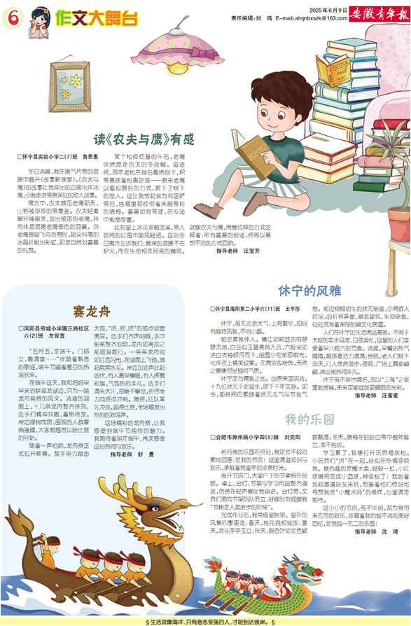 《安徽青年报·学生周刊》励志启智,开阔视野,净化心灵,陶冶情操,参与互动,集新闻性、知识性、趣味性、互动性为一体,是小学生成长的良师益友、参与互动的平台、沟通老师家长的纽带。