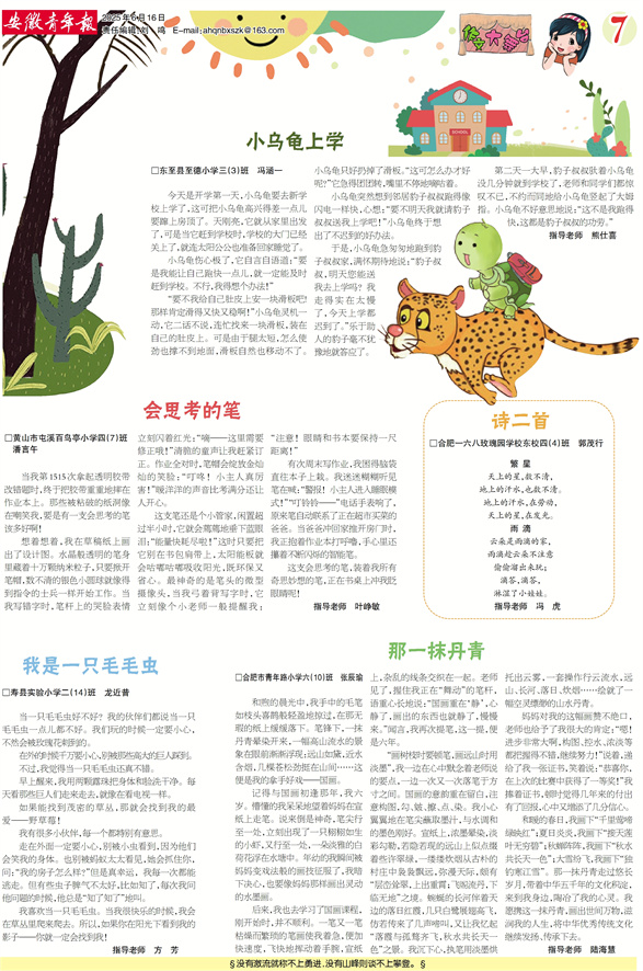 《安徽青年报·学生周刊》励志启智,开阔视野,净化心灵,陶冶情操,参与互动,集新闻性、知识性、趣味性、互动性为一体,是小学生成长的良师益友、参与互动的平台、沟通老师家长的纽带。