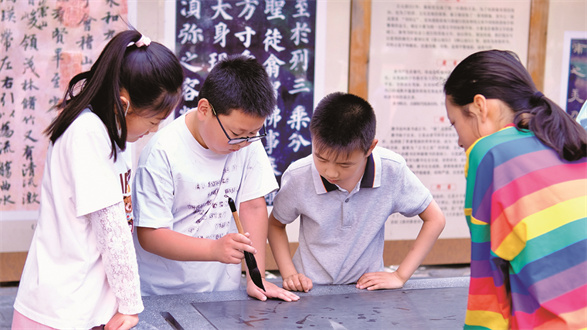 魅力社团 墨香时光 □魅力社团:合肥市长江路第三小学兰亭分校书法社团 “哇,咱们学校的书法教室也太漂亮啦!”合肥市长江路第三小学兰亭分校二年级的同学们一踏入书法教室,便发出阵阵惊叹。古色古香的栗色条案与木凳整齐排列,案上的毛毡浸满墨痕,与毛笔、砚台相互映衬。米色宫灯悬于头顶,柔和的光芒倾洒而下,散发着古朴雅致的气息。墙上挂满的书法作品,笔走龙蛇间尽显方寸之美……这里,便是合肥市长江路第三小学兰亭分校书法特色社团的教室。 据学校负责教学管理的副校长阮莉介绍,2006年,在争创国家级书法教育特色学校的进程中,“兰亭书法社团”应运而生。作为国家级书法教育示范学校的核心阵地,兰亭人始终秉持“翰墨养正,诗书化人”的育人理念,立志打造一座以翰墨滋养童心的文化殿堂。在这片天地里,书法不仅是线条与墨色的艺术呈现,更是中华文脉的生动延续,是培育“认认真真写字,堂堂正正做人”的兰亭新时代少年的重要路径。 社团自成立至今,已走过十九载岁月。六(2)班的汪雨琦满怀深情地说:“毛笔书法社团,是我与传统文化最美的邂逅之地。曾经,横竖撇捺的练习枯燥又艰难,如今,我的笔下已能写出流畅自然的字迹。在悠悠墨香中,我触摸到了汉字的深厚底蕴,更从中领悟到诸多人生哲理。这段与毛笔相伴的时光,是我成长路上最珍贵的馈赠。”五(2)班的王梓骞也兴奋地分享道:“每次拿起毛笔,蘸墨于宣纸之上书写,内心便满是宁静与喜悦。书法的魅力,深深吸引着我。在兰亭,我有幸遇到了对我影响深远的书法老师,他不仅传授我书法技巧,更教会我如何以书法传情达意。” 据社团负责人介绍,从在庐阳区首届社团展演中荣获“优秀展演奖”,到在安徽省素质教育成果展上得到赞许,兰亭人不断将书法之艺从课堂推向更广阔的舞台。社团的同学们在各类赛事中表现优异,累计23人次荣获国家级奖项,500人次斩获省、市、区级嘉奖。此外,社团连续十八年开展“墨香送福”义务写春联活动,同学们挥毫泼墨,书写并送出超5000副春联,成为春节里一道温暖人心的风景线。如今的兰亭书法社团,在传承文脉中培育新苗,在精耕细耘中助力成长,兰亭的书法少年们于四方舞台绽放光彩,彰显担当。