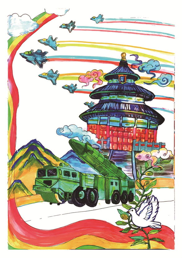 同学们,你们还记得今年九三阅兵式上那些威武之师和“大国重器”吗?他们就像祖国花园里最挺拔的枝干、最闪亮的珍宝,让人难忘又自豪!在国庆节到来之际,让我们把心中的奇思妙想和祖国的壮美山河都装进画里,为祖国母亲献上最纯真最温暖的生日祝福吧!