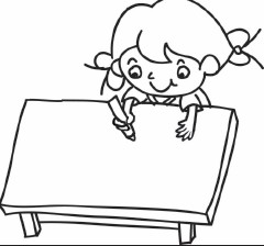 2.在小女孩的前方勾勒出桌子的形状,注意尽量让桌子看起来立体些。