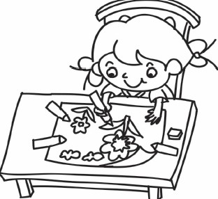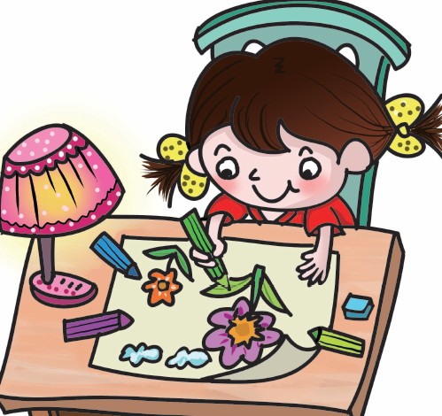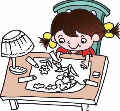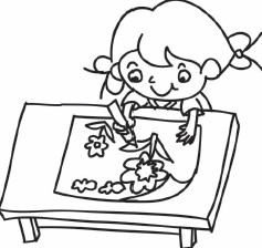 3.画出小女孩正在画的画,让画纸的一端卷起来,会更加真实哦。