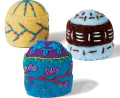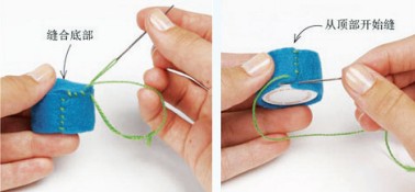 4.把做好的小棉球塞进瓶盖里。 5.把它们缝在一起。 6.最后还可以在周围绣上一些花样点缀一下。 “小刺猬”做好了,昊昊得意地展示着它的用途:以后,妈妈用完针线就可以把针插在这上面,再也不用担心找不着了。 |