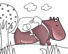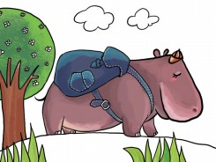 哈哈漫迷 1.在画纸的右方画上河马的头部。想让河马变得卡哇伊,大大的嘴,小小的眼睛就可以了。 2.给它背上一个大大的背包,这个道具很有用的哦! 3.短短的腿和小尾巴,还有一个胖肚子,憨(hān)憨的模样就出来了! 4.来为这个憨家伙添上背景吧。为了画面统一,草要画得大些哦! 5.开始上色喽,看鱼泡泡姐姐是怎么处理好颜色渐变的哦! 6.轮到背包上色了,白色虚线的点缀(zhuì)真是妙呀!还有那绿色的大自然也一并上色了吧。 7.让剩下的景物都来玩个变色游戏吧!旅行的河马图就正式完工啦,相信你的画也一定不会逊(xùn)色! |
