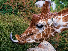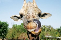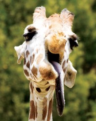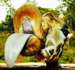 长颈鹿专辑——我有大舌头 新年有惊喜!岔开三角架,架起照相机,“动物相册”宣告提供免费写真服务啦。前来拍写真的动物可真不少,大家都想着记录下难忘的瞬间,给自己留下美丽的回忆。长颈鹿帅哥首先摆起了pose,如此风趣的镜头,怎能错过呢?