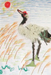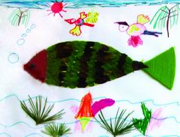 背景用废旧的布片做成,太阳、小鸟、小鱼和海底植物则是用旧毛线制成的。整幅画生机盎(ànɡ)然,栩(xǔ)栩如生,尤其是当中的“毛线鱼”,很考验耐心哦!