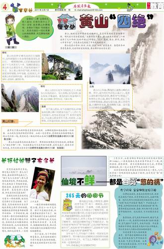 安徽的“二黄”全国闻名,世人皆知,你猜到是什么了吗?没错,就是黄山和黄梅戏!本期和下期的“寻找徽文化”,昊昊将邀你一同欣赏黄山如画般美景,共品黄梅戏醉人徽韵。 黄山“四绝” 奇松 岩石 云海 温泉 黄山印象: (合肥市东流路小学六(1)班 陈文瑞) 黄山令我最难忘的就属奇松了。那里的松树都是奇形怪状的,好像被人“动过手脚”一样。不过爬黄山可不是件轻巧的事,台阶太高了,需要不停地休息,当然还要注意安全! (合肥市东流路小学六(1)班 张园园) |