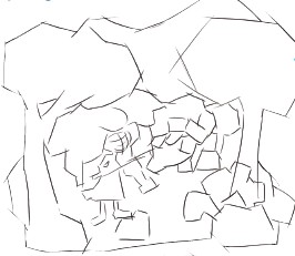 4.继续在模糊的框架中,让画面清晰起来,直到整幅图的框架被铅笔完全勾勒出来。