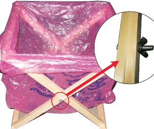 解决:我们在中轴处改装了个卢栓,既可以根据垃圾袋大小调整桶的大小,又可以固定支架。