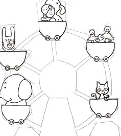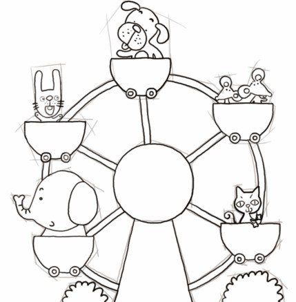 一款益智小游戏就可以轻松打发课余时间,思想不偷懒,小脑袋才会更灵光。 1.用铅笔勾勒出摩天轮的雏形。 2.让这些贪玩的小动物们也来过把瘾! 3.摩天轮出现了,是不是要开始转了呢? 4.没错,草稿去掉了,准备工作已经完成了! 5.为摩天轮披上五颜六色的外衣,真是好看极了! 6.瞧,转起来了,转起来了!动物们玩得多开心啊! |
