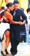 探戈作为阿根廷的国舞,每个人似乎天生就是舞蹈家,音乐响起,人们便开始翩翩起舞。你在阿根廷看电视,兴许会有四、五个频道在转播足球比赛,但是一定有十来个频道在播放探戈舞节目。在街头,即兴起舞的男男女女到处可见。