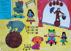 不过瘾的同学们还拿起了画笔记下了精彩的马戏节目,聪明的你能看出他们都在画什么吗?