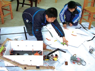 救援机器人是杨旭东和两名队友合作完成的,在洪老师的带领下,洪文杰、黄亚军和杨旭东组成三人团队,由杨旭东出任队长。洪老师告诉小编,三人的动手能力都很强,平时就喜欢做些小东西,一有空就到学校实验室,对着机器人图纸琢磨,变形金刚、奥特曼等都是他们特别喜欢的动画形象。尤其是杨旭东,他可是一个狂热的机器人迷哦。