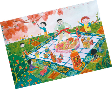 划龙舟、摘西瓜、唱小曲,哪里这么热闹啊?哈哈,不知道吧!这可是小伙伴们描绘的美丽安徽。下面的这些作品,都是在“平安杯”“百万少年爱安徽”书画大赛里获奖的。本次活动是由团省委、省教育厅、省少工委主办,安徽青年报社承办。漂亮的作品,看得小卷毛我心里都痒痒的,走,咱一道去看看吧! 《丰收乐》