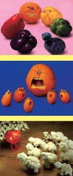 问题一:请说出每幅图片上蔬果家族的真实身份,比如:南瓜。