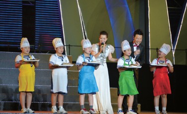 话说校园 我为豆腐节上菜喽 9月15日晚,第18届中国豆腐文化节开幕式暨“亲山乐水·幸福淮南”大型晚会在淮南市体育场隆重上演。在这个灯光闪耀的舞台上,来自淮南师范附属小学的五位同学为大家端上了地地道道的新鲜豆腐。 看,同学们各戴一顶厨师帽,可不就像大厨在展示自己的作品吗?连谭晶阿姨和主持人任鲁豫叔叔都对那香喷喷的豆腐赞不绝口呢!