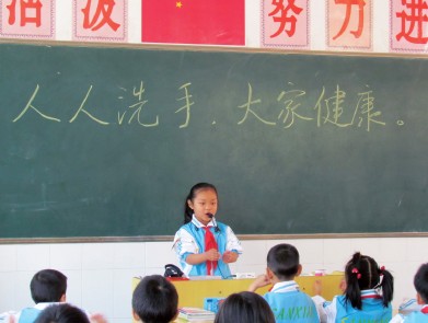 跟我学洗手 □刘 蕾 韦国蒙 本报记者 黄丽娟 “大家跟我一起做,伸出双手,一起来洗吧……”繁昌县城关镇第三小学三(2)班的课堂里,一双双小手不停地演练着健康洗手的动作。 据悉,10月15日是第4个“全球洗手日”,繁昌县爱卫办、县教育局教育科把城关镇第三小学三(2)班开辟为主要阵地,现场宣传洗手的益处和健康洗手的方法。 图为学生代表马秋璇正在做洗手示范呢!看,她用生动的语言讲解着,动作那么娴熟,大家纷纷模仿着,要把自己的小手洗得干干净净。