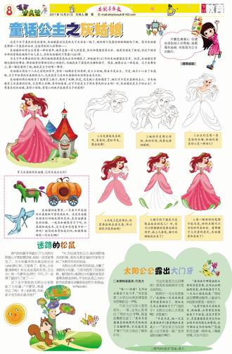 只要充满爱心,你便会得到别人的帮助;就算是灰姑娘,也有成为公主的那天! 漫迷大课堂 穿上水晶鞋的灰姑娘,已经变成公主啦! 1.头发看起来真软呀,柔柔的,蓬松开来,像在跳舞! 2.她的手是那么纤细,画的时候,线条也要细腻哦。 3.公主们总有一身美丽的衣裙,和她们善良的心灵一样动人! 4.头发上色是难点,你需要涂抹出层次感,所以颜色不能呆板哦! 5.裙子的下摆是不是像朵绽放的花儿?对,你可以将裙摆的线条向两边伸开,添上几条线,裙子的褶皱就出来了! 6.每一幅画的结尾都不能马虎,好的点缀可以为你的作品加分。看那裙子上闪着的亮光,灰姑娘更加美丽了!