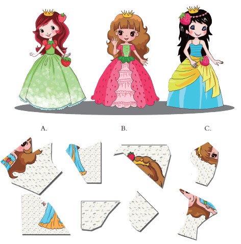 谁才是国王的女儿 草莓国的国王实在老得不行了,躺在病床上的他开始怀念起他美丽的女儿——草莓公主了。他的女儿爱上了邻国的番茄王子,但他怎么能容忍女儿爱上了草莓家族世代的仇家呢?是的,他不能容忍,所以他将她逐出了国家,不再认这个女儿。 但是,现在的草莓国王多么想念他的女儿啊!他在全国都贴出了告示,希望女儿能够回来看望病床上的他。侍卫回来禀告了国王,草莓公主回来了,可是,不是一个,而是三个,有两个公主是假冒的。因为,国王仙逝之后,公主将会得到一笔财富。 国王太老了,他的眼睛已经认不出多年前的草莓公主了。眼前的三位究竟谁才是他的女儿呢? 国王的手里有一堆碎照片,当年一怒之下,他撕碎了唯一一张草莓公主的照片……对,只要拼好这些碎照片,就能认出女儿了! 是的,当你拼完这些碎片,真正的草莓公主就要现身了。她是A公主、B公主,还是C公主呢?火眼金睛的你,快来帮国王认出他日夜惦念的女儿吧!(竞猜Q:937561185)